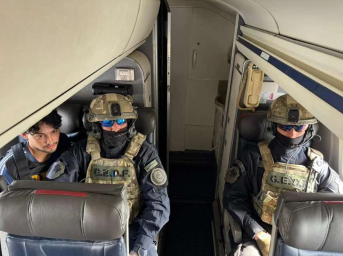 Al descender de la aeronave en El Palomar, un agente le preguntó cómo había sido el vuelo. “Bien”, respondió el joven, aún sentado y flanqueado por dos miembros del grupo GEOF. El mismo agente le notificó que quedaba a disposición del Estado argentino y del Juzgado de Garantías N°4 de La Matanza.