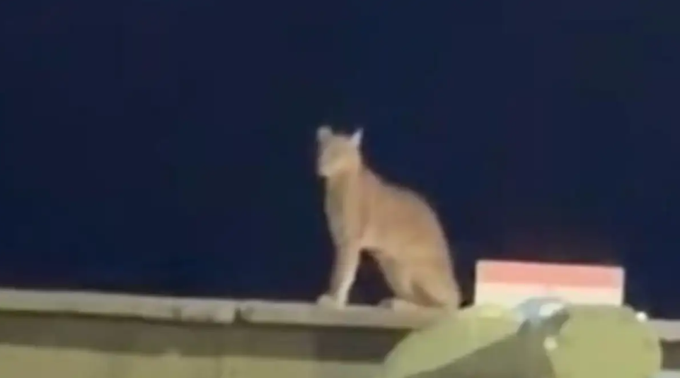 El felino se movió con tranquilidad por el predio, mientras los trabajadores, sorprendidos, registraban la escena con sus teléfonos. En las imágenes se observa al animal primero recostado y luego sentado sobre un muro cercano a las personas, desde donde contemplaba el movimiento del lugar sin mostrar señales de agresividad.