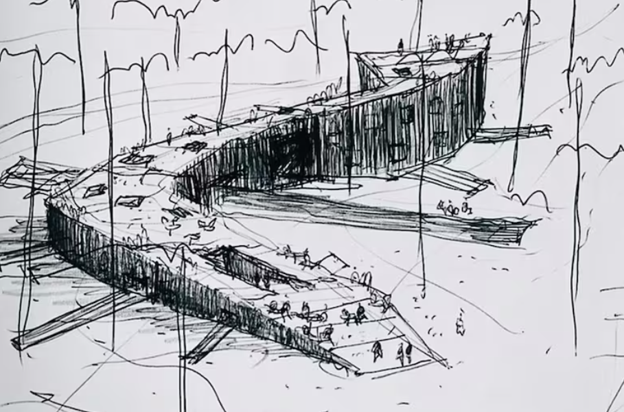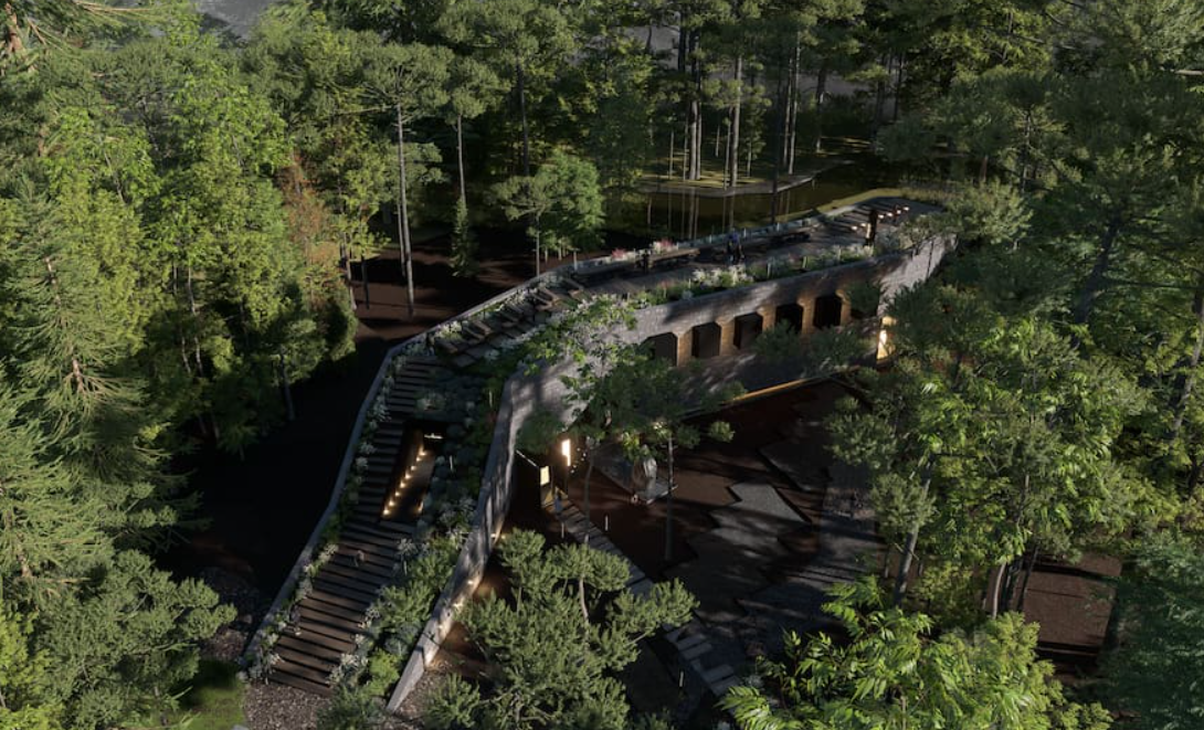 Para los arquitectos, el proyecto es “un animal gigante dormido en el bosque” y, al mismo tiempo, una reinvención del paisaje sin agredirlo.