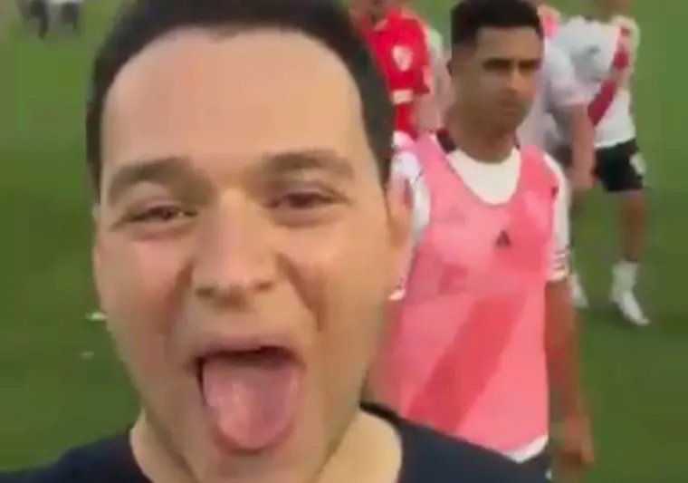 En las imágenes, registradas por un hincha, se observa al jugador del Millonario agrediendo a una persona que se encontraba filmando los festejos xeneizes cerca del borde del campo.