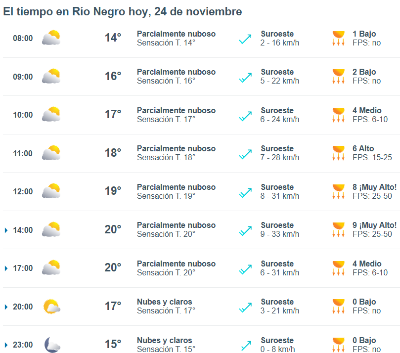 El pronóstico del tiempo para la ciudad de Viedma, indica que hoy 24 de noviembre el cielo estará parcialmente nublado por la mañana y la temperatura rondará entre 14 grados.