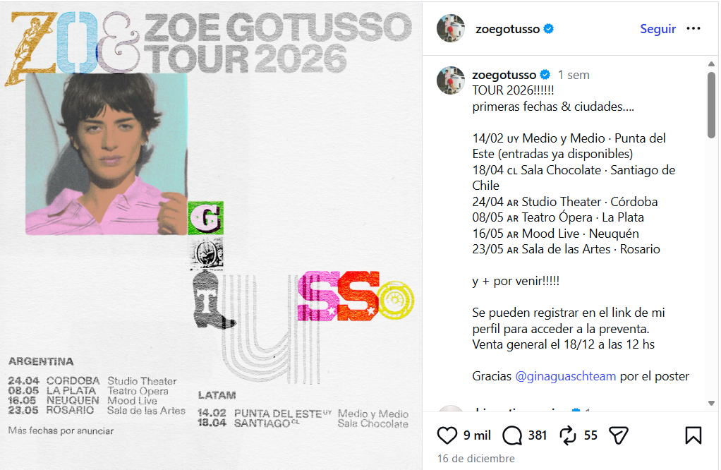 Link de registro para acceder a la preventa: tinyurl.com/preventa-tour2026-zoegotusso